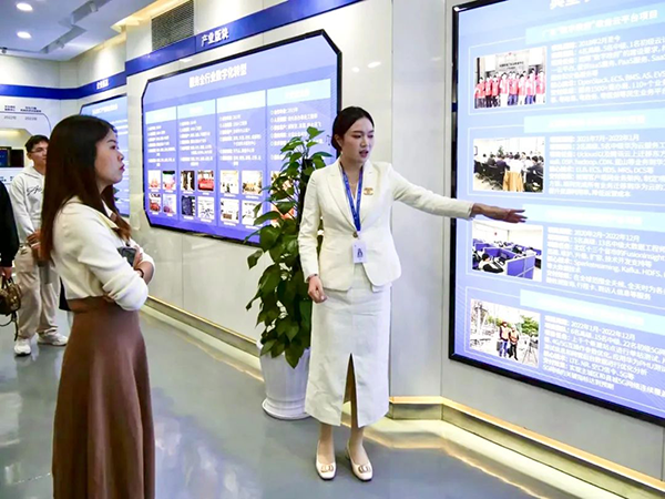 拜访师生随后参观了腾博tengbo9885官网技术展厅,深入分析腾博tengbo9885官网技术开展历程、业务模块、经营理念等内容,并分析腾博tengbo9885官网技术人才培养“三循环”生态模式、深度参与高校课程改革、引入职业认证等举措。过程中,大家认真听取介绍,并持续提问,表现出浓厚的兴趣。在研讨中,学生们不仅取得了宝贵的行业知识,还对腾博tengbo9885官网技术的创新精神和企业责任感有了更深刻的认识。
