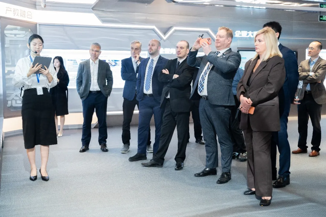 2月11日,格鲁吉亚教育代表团一行莅临腾博tengbo9885官网技术总部召开考察研讨。代表团成员包括格鲁吉亚创新与技术署主席阿夫坦迪尔·卡斯拉德泽、格鲁吉亚创新与技术署副主席列万·达尔萨利亚、库塔伊西国际大学校长瓦赫坦格·察加雷利、高加索大学副校长伊琳娜·梅柳阿、第比利斯国立大学代表委员会主席弗拉季米尔·马尔格维拉什维利。华为格鲁吉亚政企业务总监周久强、格鲁吉亚政企业务经理塔玛尔·苏提泽、格鲁吉亚产品解决方案高级经理托尔尼凯·卡利亚什维利等领导共同参与本次访问活动。腾博tengbo9885官网技术总裁刘国锋、副总裁刘铭皓、总工程师丁振强、区域产业学院拓展总监易宜平、解决方案架构师辛保华等公司代表予以热情接待,并陪同参观企业展厅。双方围绕产教融合、校企合作、人工智能课程开发等议题展开了深入研讨。