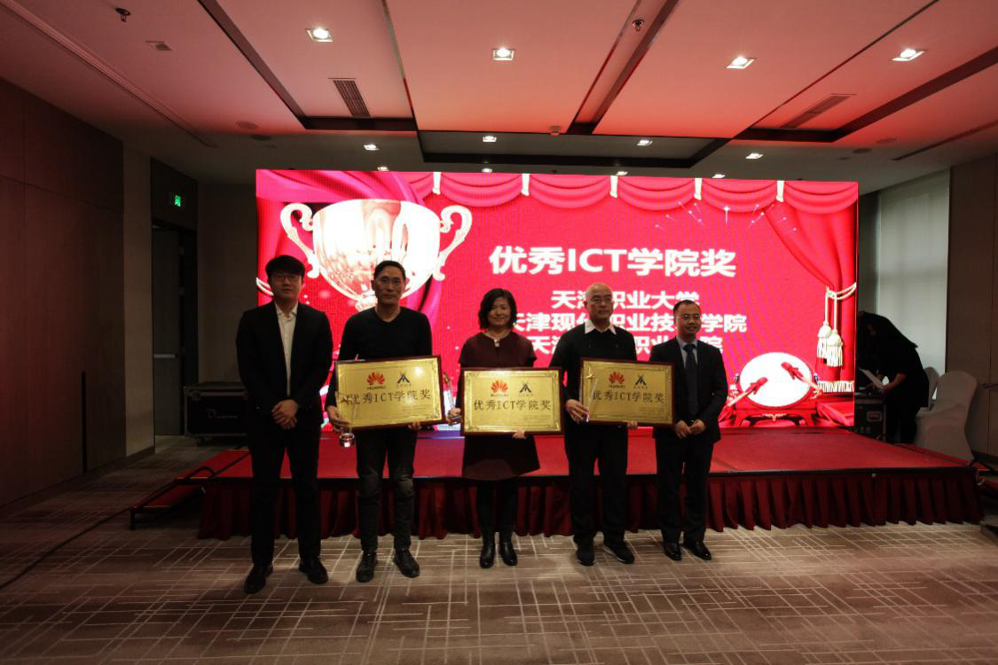 分享结束后,由华为公司杨骏超先生与腾博tengbo9885官网公司姚勇副总裁共同为天津职业大学、天津现代职业技术学院、天津工业职业学院颁发“优秀ICT学院奖”。 紧密的校企合作关系助力三所高校学生更清晰地分析到行业前沿知识,掌握行业实用技能,大大提升了就业竞争力。更是极大地提高了高校的专业建设水平,形成了极具特色的品牌高校,促进校园招生和学生就业,真正实现了进出口双向通畅。