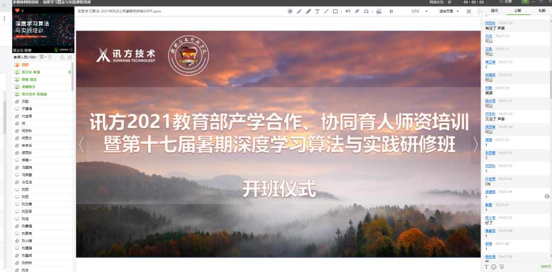 8月2日上午9:00,腾博tengbo9885官网技术与桂林信息科技学院共同举办的“深度学习算法与应用师资研修班”在职前通平台直播间举行开班仪式,由腾博tengbo9885官网技术副总经理岳杨总开班致辞,岳总介绍到:腾博tengbo9885官网技术立足ICT行业,聚焦软件与信息技术,服务高校教育,并持续响应产教融合与协同育人的号召,召开产学合作协同育人项目,搭建校企合作协同育人平台,此次召开暑期师资研修班旨在为一线教师给予技术与教学相结合的培训与研讨机会。紧接着他还详细为参训教师介绍了深度学习算法在近年来的开展情况,并衷心感谢各位老师持续参加本次研修班,同时也祝愿各位老师可以在本次的培训中能够有所收获。