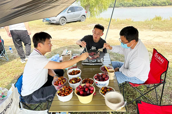 远处美景,近处美食。蓝天白云之下,大家分工协作,开始搭帐篷,准备烧烤,在这最真实的烟火气息里,大家慢慢靠近,团队凝聚力逐渐升温。