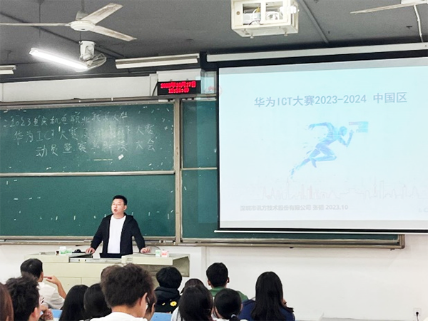 以赛促学强本领,以赛促练提效能。10月17日,2023重庆机电职业技术大学“华为ICT大赛&腾博tengbo9885官网杯大赛”动员暨赛事解读大会在学校求真楼F222会议室圆满举办,信息工程学院相关领导和腾博tengbo9885官网技术重庆机电运营中心经理张韬,以及大数据和通信协会全体成员以及报名参加大赛的学生出席大会。